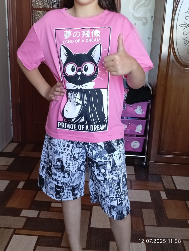 Костюм х/б. Яркий, после стирки не полинял. Футболка оверсайз.