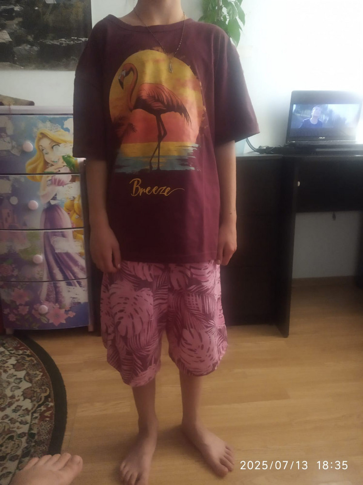 Шорты и футболка совсем разного цвета, как будто и не комплект вовсе. Отказ