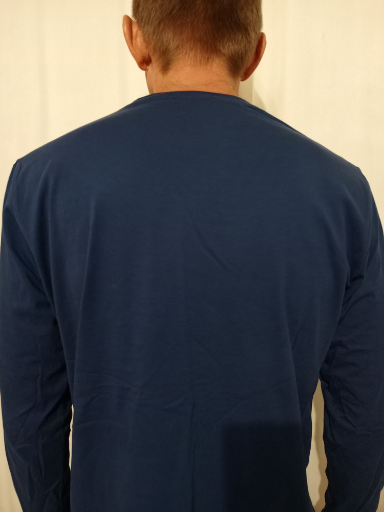Мужской лонгслив с V-образной горловиной — универсальная базовая модель, которая подходит для повседневной носки и комфортного образа на каждый день. Изготовленный из мягкого трикотажа состава 95% хлопок и 5% эластан, лонгслив обладает оптимальной эластичностью, приятен к телу и отлично сохраняет форму. Плотность 200 г/м² делает ткань средней по толщине: она не просвечивает, хорошо держит силуэт и комфортна в носке в любое время года.